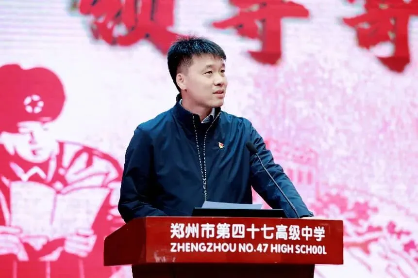 殷殷寄厚望,奋进正当时。纪委书记、德育工作主管领导吕鹏飞发表致辞,他深情寄语全体师生,雷锋精神是永恒的精神丰碑,是中华民族宝贵的精神财富,更是青年学子成长路上的指路明灯。他勉励全体师生要将雷锋精神内化于心、外化于行,摒弃形式主义,立足校园、扎根生活,在服务他人中提升自我,在奉献社会中实现价值,以“螺丝钉”的坚守、“钉子”般的韧劲,践行青春使命,书写奉献华章。随后,吕鹏飞书记高声宣布:“郑州市第四十七高级中学2026年学雷锋主题活动月正式启动!”话音落下,全场掌声雷动,青春的信念在掌声中传递,奉献的种子在心中扎根。