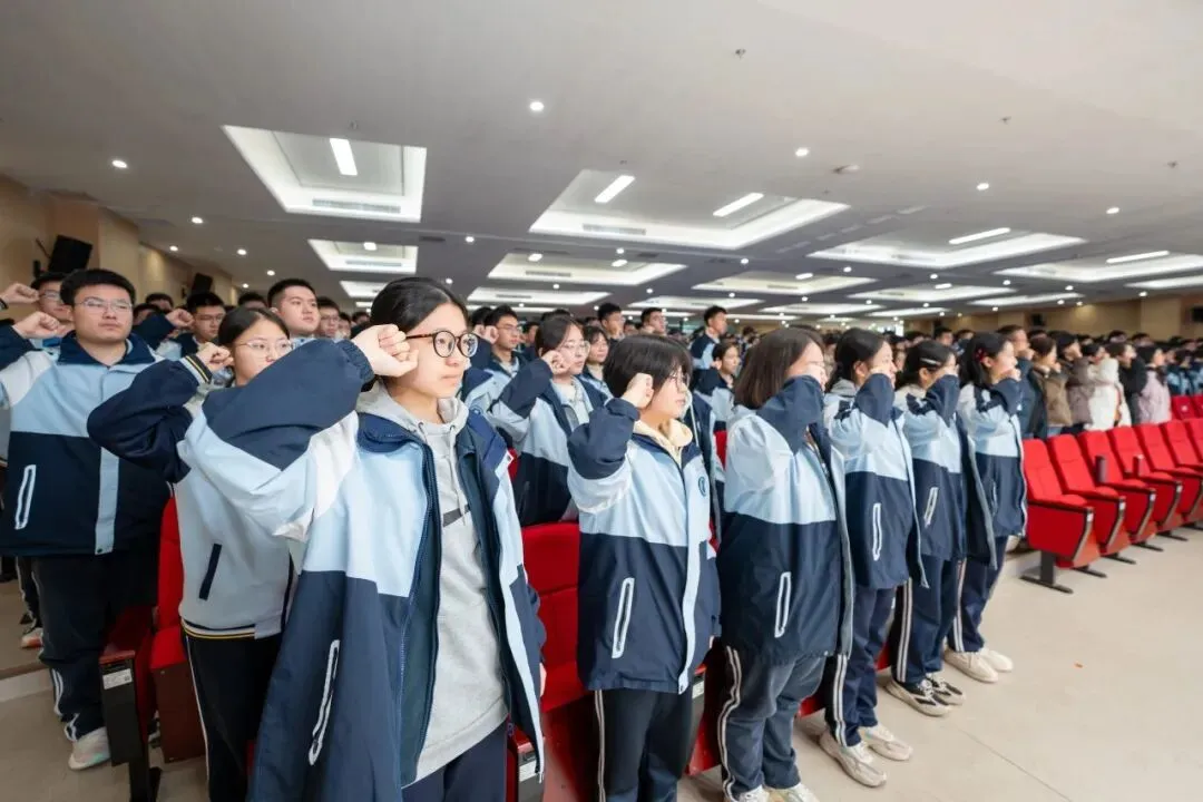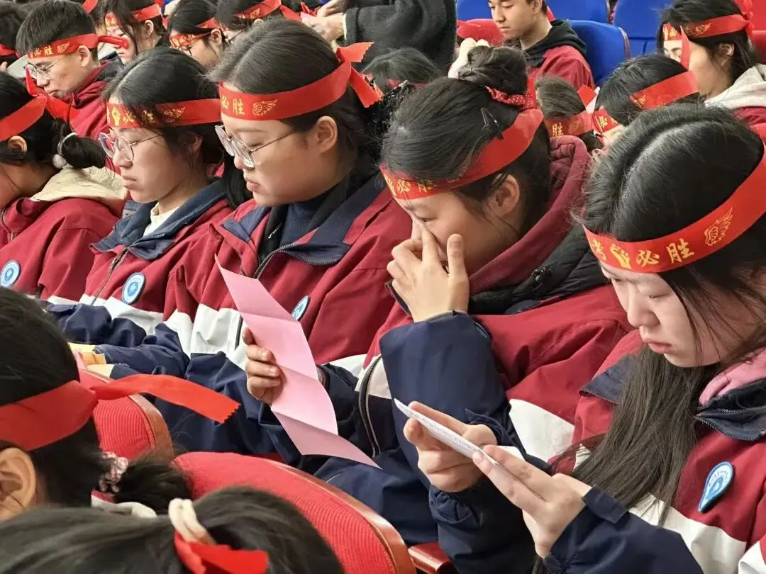 最触动人心的环节,当属“一封家书”现场递送与家长鼓励视频。同学们一字一句品读着来自家人的温暖话语。“孩子,你永远是我们的骄傲,我们永远支持你。”“累了就歇歇,我们永远在你身后。”字里行间的叮咛与期盼,化作了最柔软也最坚定的力量。台下不少同学眼眶泛红,轻轻擦拭着眼角的泪水。与此同时,大屏幕上播放着家长们提前录制的鼓励视频,熟悉的面孔、真挚的话语,让这份来自家庭的支持与爱意,深深烙印在每一位学子心中。