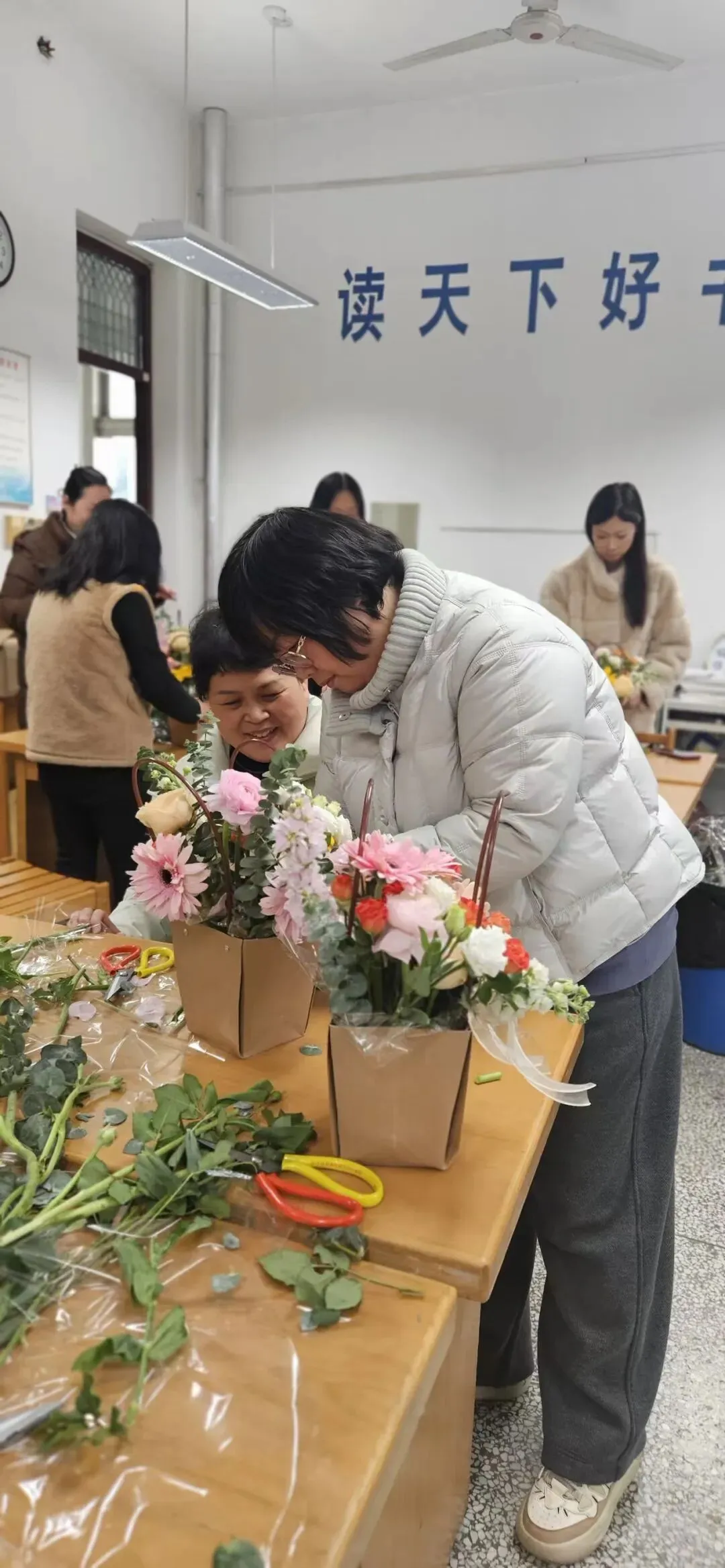春风送暖,花香四溢。在第116个“三八”国际妇女节来临之际,为丰富女教师的精神文化生活,展现女教师的优雅风采,3月5日下午,在学校阅览室开展了插花艺术创作活动,进一步凝聚巾帼力量。