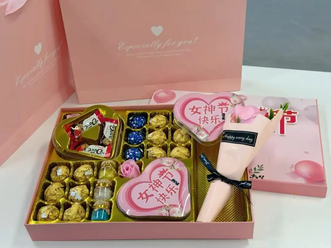 这份专属女神的节日福利,从颜值到内涵,都藏着律所的满满用心与珍视。温柔雅致的粉色礼盒,印刻专属“女神节快乐”定制标识,一眼便解锁节日专属仪式感;礼盒之内,醇香丝滑的巧克力、清甜回甘的糖果,搭配点缀其间的精致小花束,将甜蜜与美好悉数珍藏,治愈每一段职场时光。更显心意与分量的是,每一份礼盒中,都放着一张手写贺卡——落笔皆是真诚,既是对大家过往默默付出的肯定与致谢,更是对未来并肩前行的期许与祝福,让这份职场关怀,多了一份专属书写的温情与厚重。