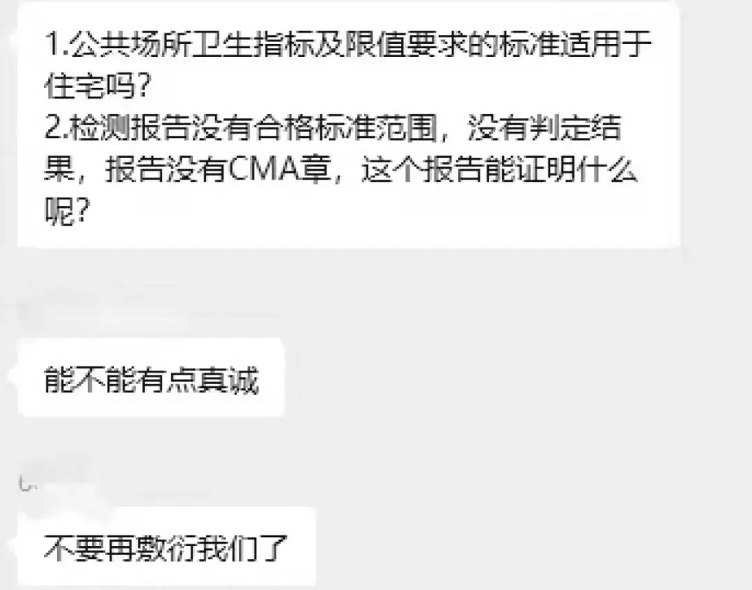 “这么多户业主家里都有大面积霉菌,肉眼可见,开发商给出的报告,要么是无异常,要么是看不懂的一堆数值。不要再敷衍我们了。”有业主表示,开发商给出的上述检测报告,业主们都不认可。