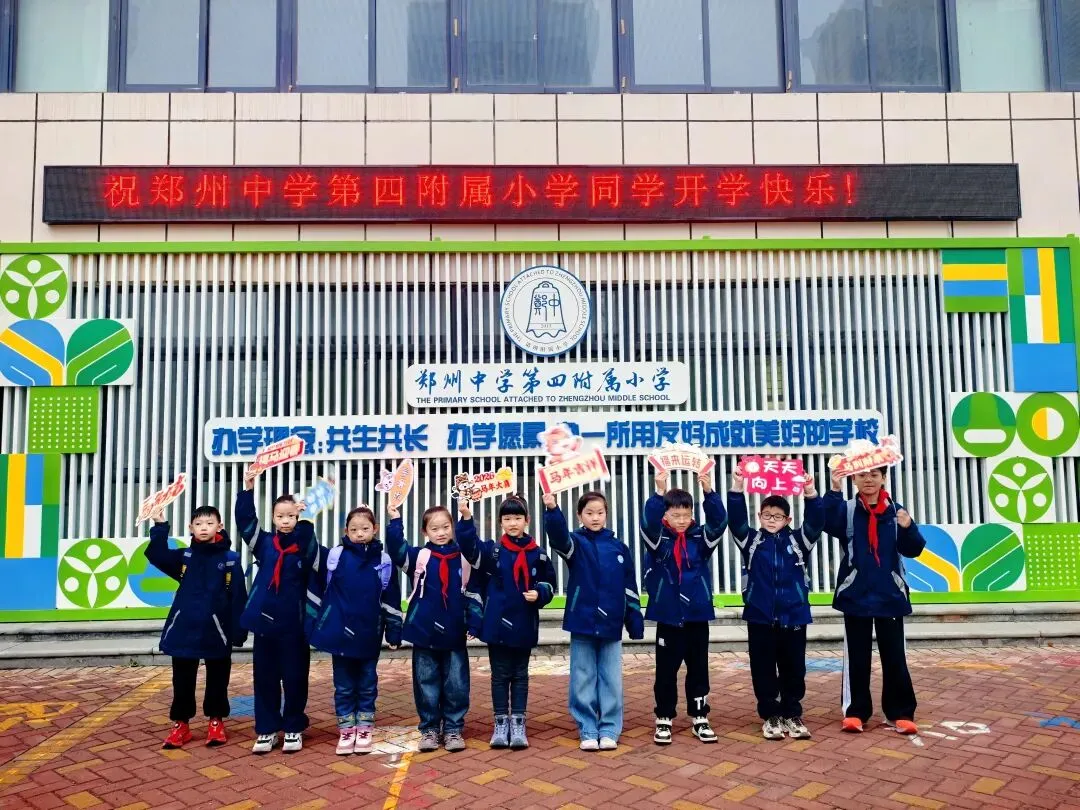 开学第一天,郑州中学第四附属小学全体学生满怀喜悦重返校园,一张张灿烂的笑脸成为校园里最美的风景。