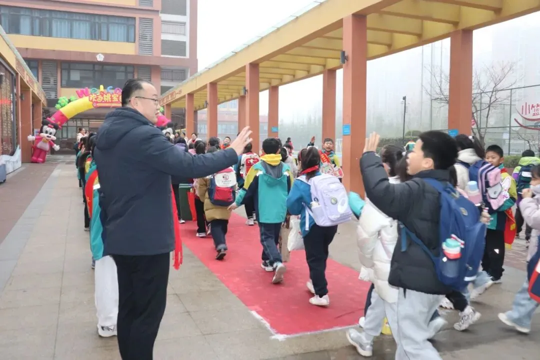 春风启新程,童心向未来。郑州市二七区漓江路小学开学报到日温馨有序,校园内年味装饰与绿萝相映成趣,氛围浓厚。