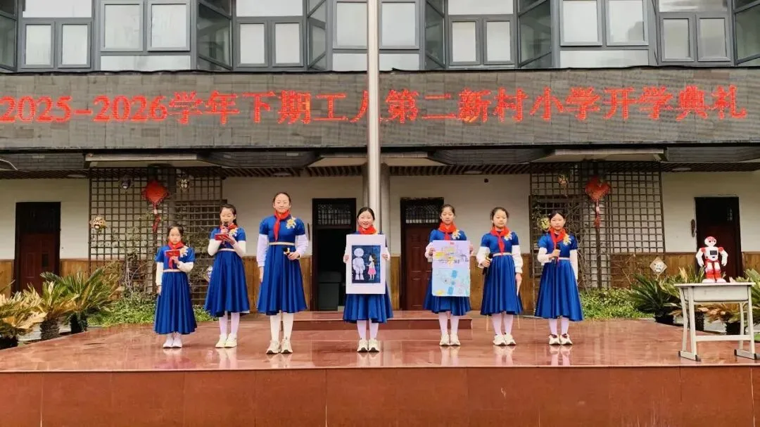 2026年3月5日郑州市管城回族区工人第二新村小学举行了以“红领巾”拥抱科技新时代为主题的2026年春季开学典礼,开启新学期的第一课。