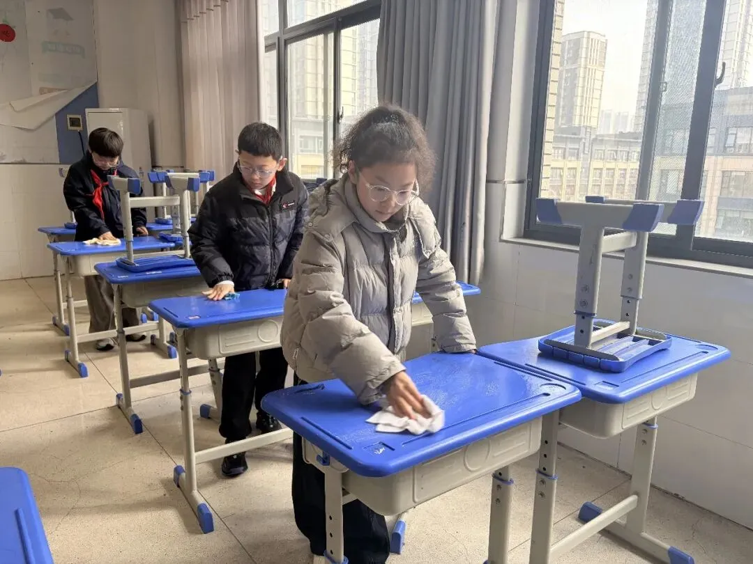 教室里,大家认真书写粉笔字、办黑板报、整理阅读角、静心阅读、打扫卫生,以积极饱满的状态做好开学准备,在劳动与书香中迎接崭新学期,展现出漓江少年昂扬向上的精神风貌。
