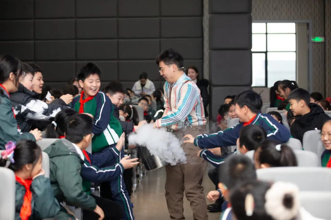 神奇的变幻、趣味的互动,让孩子们目不转睛,阵阵清脆的笑声、稚嫩的惊叹声,在校园里久久回荡。