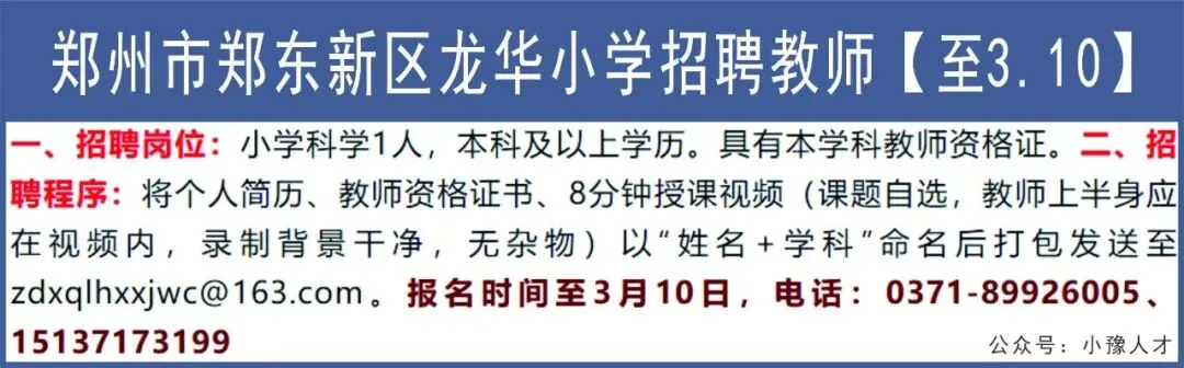 >郑州市郑东新区龙华小学招聘教师【至3.10】