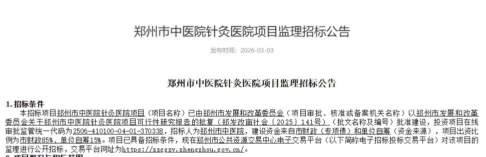 河南省儿童医院来高新区,这也就意味着高新区开始补齐自己的短板。河南省儿童医院西院区,位于高新区金竹街12号,也就是高新万达的北边,项目预计今年6月建成投用。这里原先规划的是一个养老机构,一直迟迟没有运行,在去年年底根据周边的居民说,要变成儿童医院,现在道路线路已经划好,为营业开始做准备了。根据官方给出的数据,这个三级甲等儿童医院,将会是高标准的存在,未来会打造成为集医疗、教学、科研、预防保健为一体的现代化儿童医学中心。其实对于高新区来说,逐渐解决交通这个卡脖子的问题后,你会发现,医疗是这里的最大的痛点,高新区发展30多年,常住人口达到了83万,17岁以下少年儿童将近13万,其实不管是儿童还是成人就医都不是那么容易的。而这次儿童医院西院区的建立,也是高新区民生建设的里程碑。对于医疗来说,高新区也在努力,积水潭医院郑州医院,也就是原来的郑州中心医院高新院区新院区已经完工,在去年年底的时候也开启了义诊。当下的高新区正在逐步完善医疗短板,恭喜高新,配套设施更加完善。其实不止是高新区,你会发现这两年,郑州在加速建设医院:中国医学科学院肿瘤医院河南医院,也就是河南省肿瘤医院南院区,占地面积大约240亩,规划床位是1500张,功能定位是肿瘤专科研究型医院。河南省人民医院南院,它的概况是占地面积大约273亩,总规划2000张床位。根据航空港区的发布,这两所医院是航空港区“两院一中心”的一部分,另外一个一中心就是河南省红十字血液中心。具体位置黄海路以南、华佗中路以北、彩鹤街以东区域,也就是双鹤湖以北的位置。目前全部楼栋已主体封顶,大概2026年6月底前全部建成投用。另外还有一个医院那就是郑州大学第一附属医院惠济院区改扩建项目竣工已经于2025年11月备案。郑州市中医院针灸医院项目发布监理招标公告,根据公告也可以看出医院的概况:床位500张,其中中医综合楼1栋,食堂1栋等,合同估算价约730.43万元。具体位置在于管城豫英路(魏庄西街)以东、恒安街(规划中)以南、银莺路以西、滨河路以北区域。