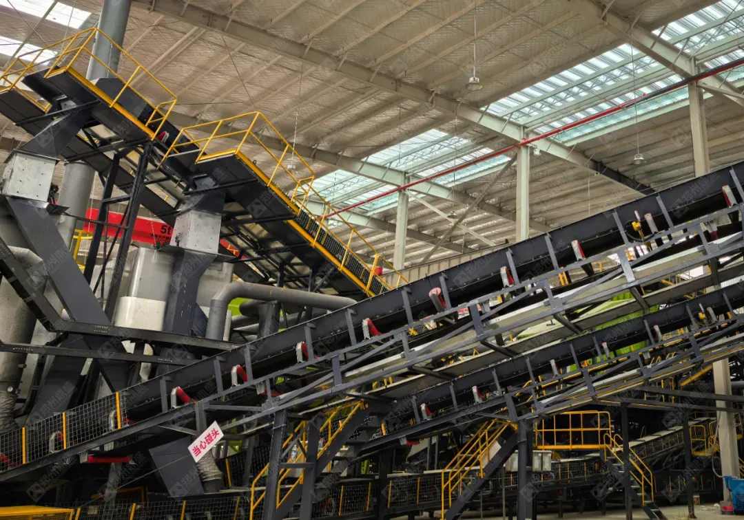项目采用一次粗破碎 + 分选 + 二次破碎 + 振动筛分 + 资源化利用的成熟工艺。建筑垃圾经粗破碎后,通过皮带输送机输送至分选设备,经分选后进入二次破碎环节,再由振动筛分离出不同粒径骨料,作为再生产品原料。分选产生的可燃物(如布料、泡沫等)可作为替代燃料,供应至水泥企业或生活垃圾焚烧发电单位;橡塑制品、木材、金属等物料则交由专业单位进行资源化处置与综合利用,实现固废资源高效循环利用。