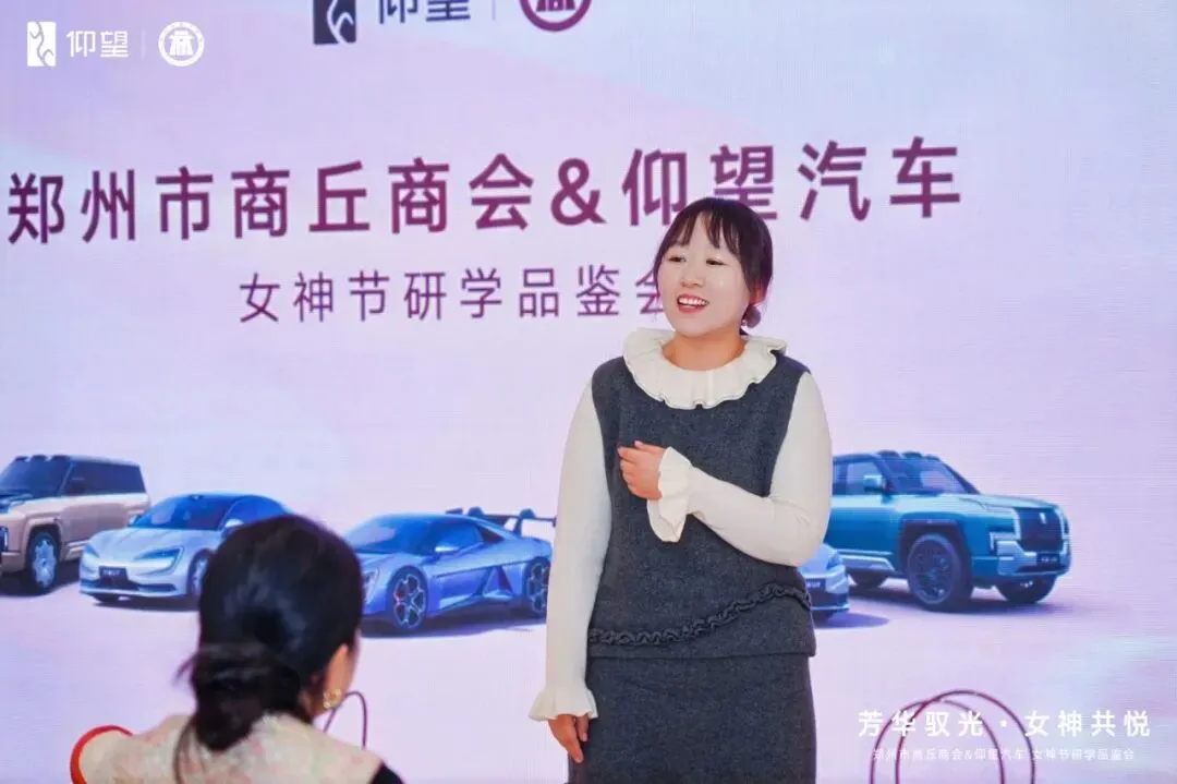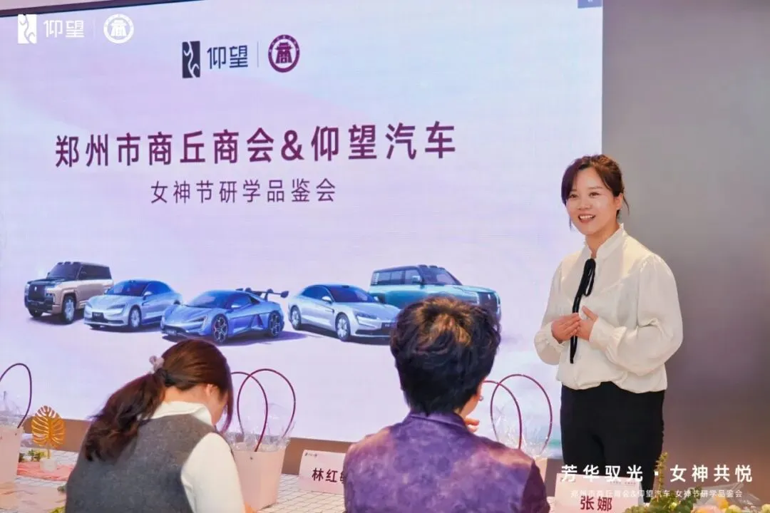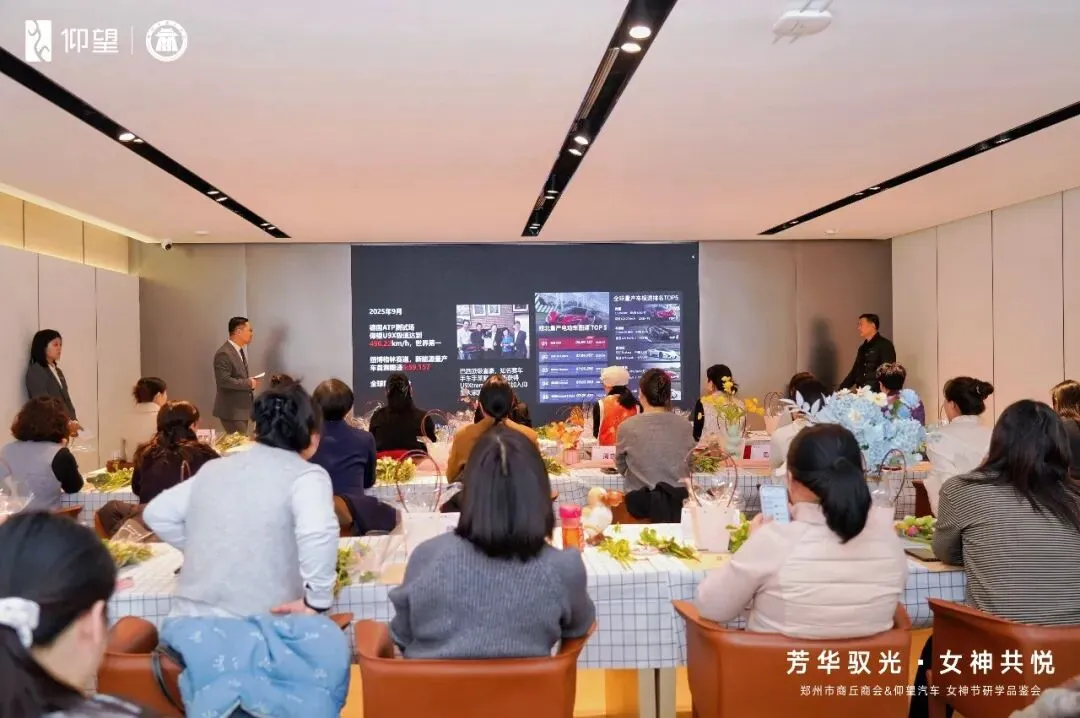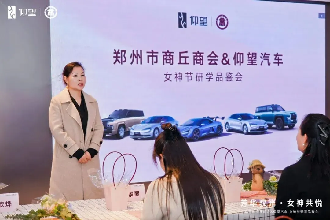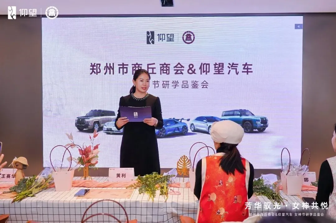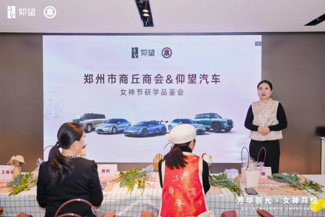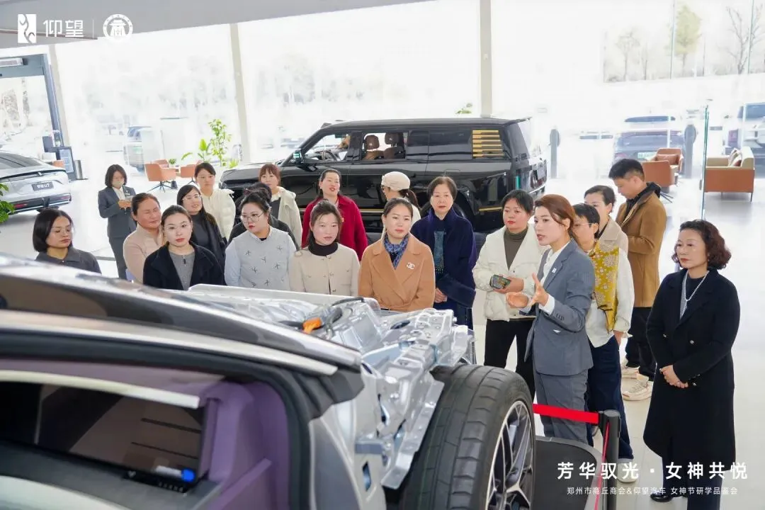 春风送暖,芳华绽放。在第116个“三八”国际劳动妇女节来临之际,郑州市商丘商会携手郑州仰望汽车,于3月5日下午在郑州惠济仰望中心成功举办“芳华驭光·女神共悦”女神节研学品鉴会。郑州市商丘商会秘书长黄利,郑州市柘城商会执行秘书长王娜、郑州市襄城商会秘书长王赛华、郑州市商丘商会理事李娜、刘景丽、会员张英歌、魏金艳,省直第三人民医院健康管理中心负责人林红敏、商丘籍老乡以及来自金融、传媒、食品、服装等领域的20余名女企业家、精英代表共同参加活动,共赴这场兼具科技温度与人文情怀的专属研学之旅。本次活动以“科技创新·产业赋能”为核心,既是商会致敬新时代女性力量的暖心举措,也是链接乡贤资源、助力产业升级的务实实践。