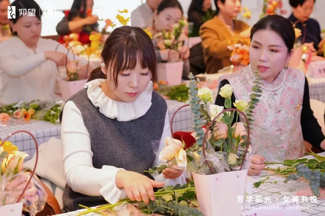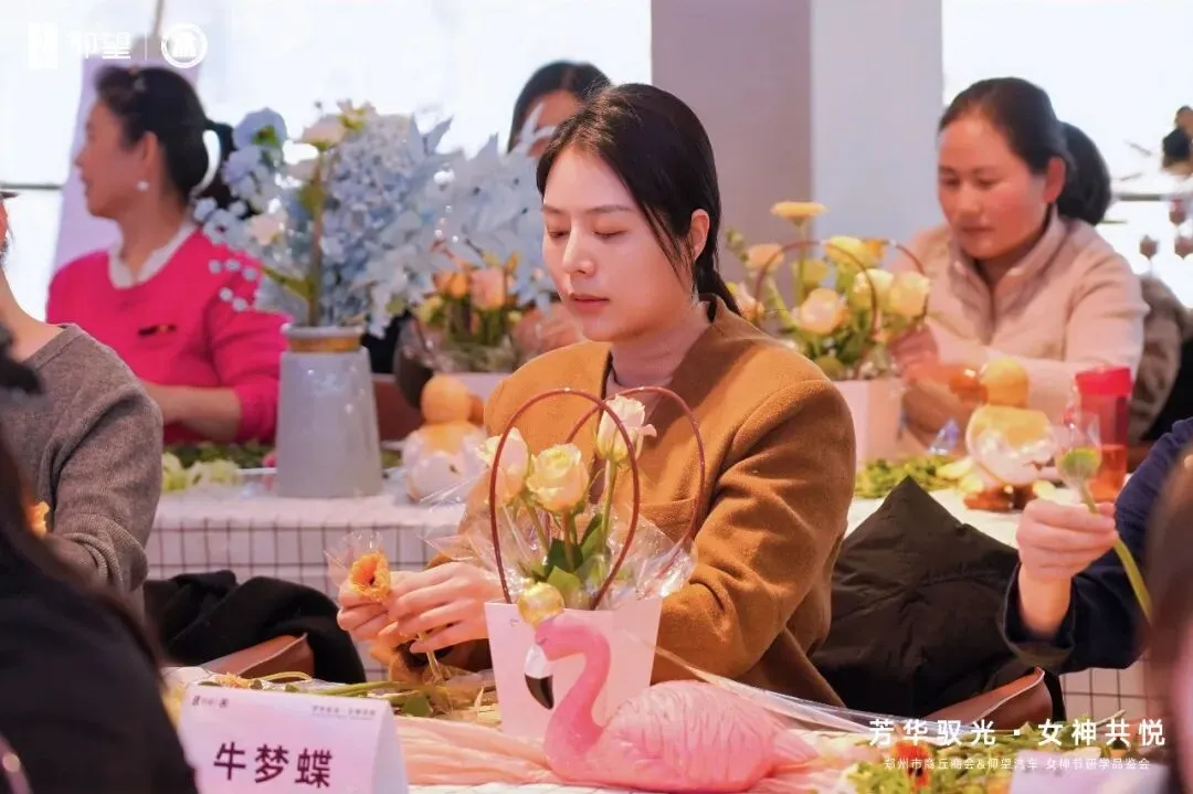 大家分别介绍了各自领域的业务布局:文旅康养、工程建设、餐饮管理、茶文化运营、钢结构工程、医疗健康、金融服务、文化传媒、食品生产、服装品牌运营等多个行业,涵盖实体经济、生活服务、新兴产业等多个赛道。通过真诚分享,与会人员进一步熟悉了彼此的资源优势与合作空间,为今后跨行业、跨领域合作打下坚实基础。随后,活动进入温馨雅致的插花沙龙与茶歇品鉴环节。在花艺老师的专业指导下,各位女嘉宾亲手创作花艺作品,在指尖流转间感受生活美学;伴着清茶香气,大家围绕企业经营、女性成长、商会发展等话题畅所欲言,在轻松氛围中增进了解、凝聚共识,充分展现了新时代女企业家自信从容、锐意进取的精神风貌。