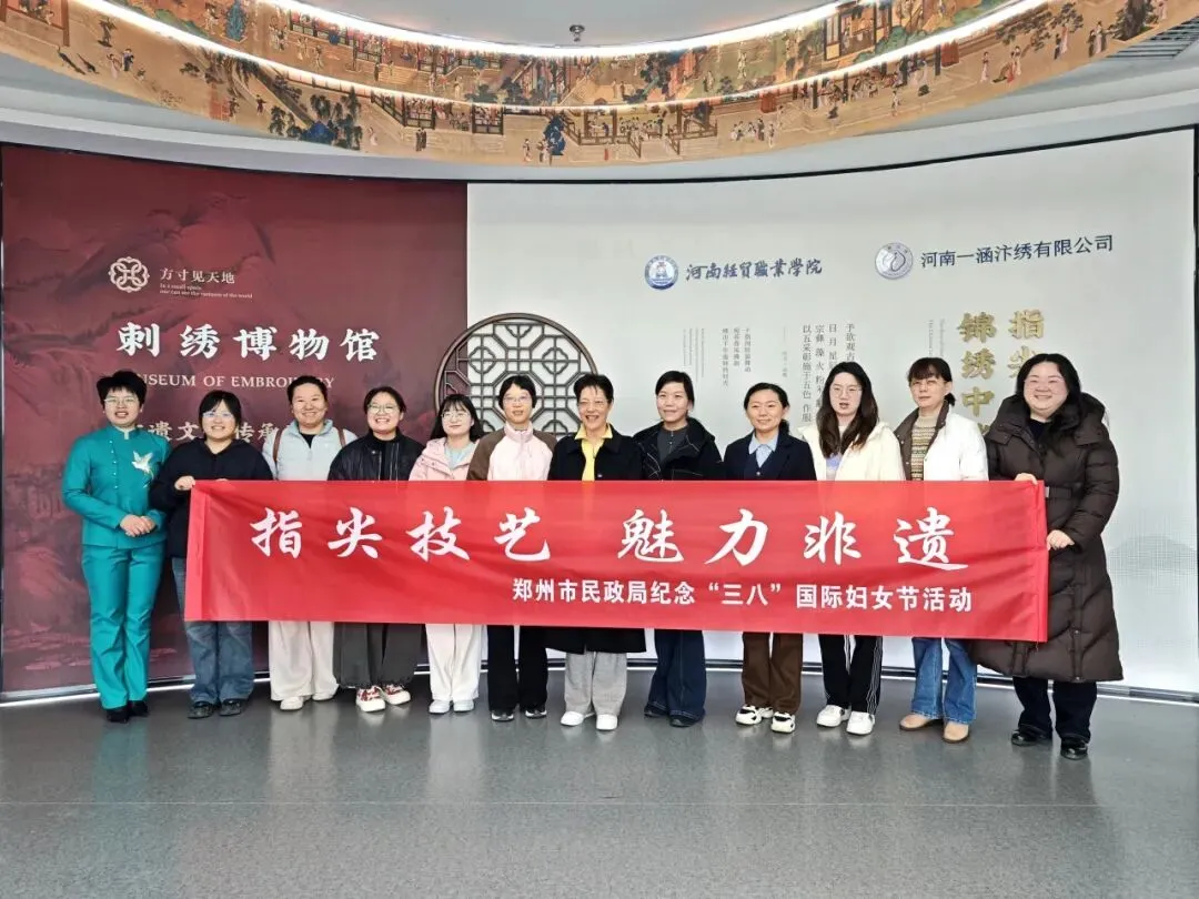 最后,大家合影留念,在欢声笑语中为活动画上了圆满的句号。此次“指尖技艺·魅力非遗”主题活动,不仅让郑州市民政局的女干部职工们度过了一个富有文化气息的难忘节日,更通过实地探访与深度体验,生动展示了一涵汴绣作为河南省文化产业示范基地的深厚底蕴与企业实力。未来,一涵汴绣将继续秉承匠心,以非遗为媒,链接更多社会力量,做中国传统手艺的守护者与新时代女性风采的展示窗,让千年汴绣绽放更加绚丽的巾帼光彩。