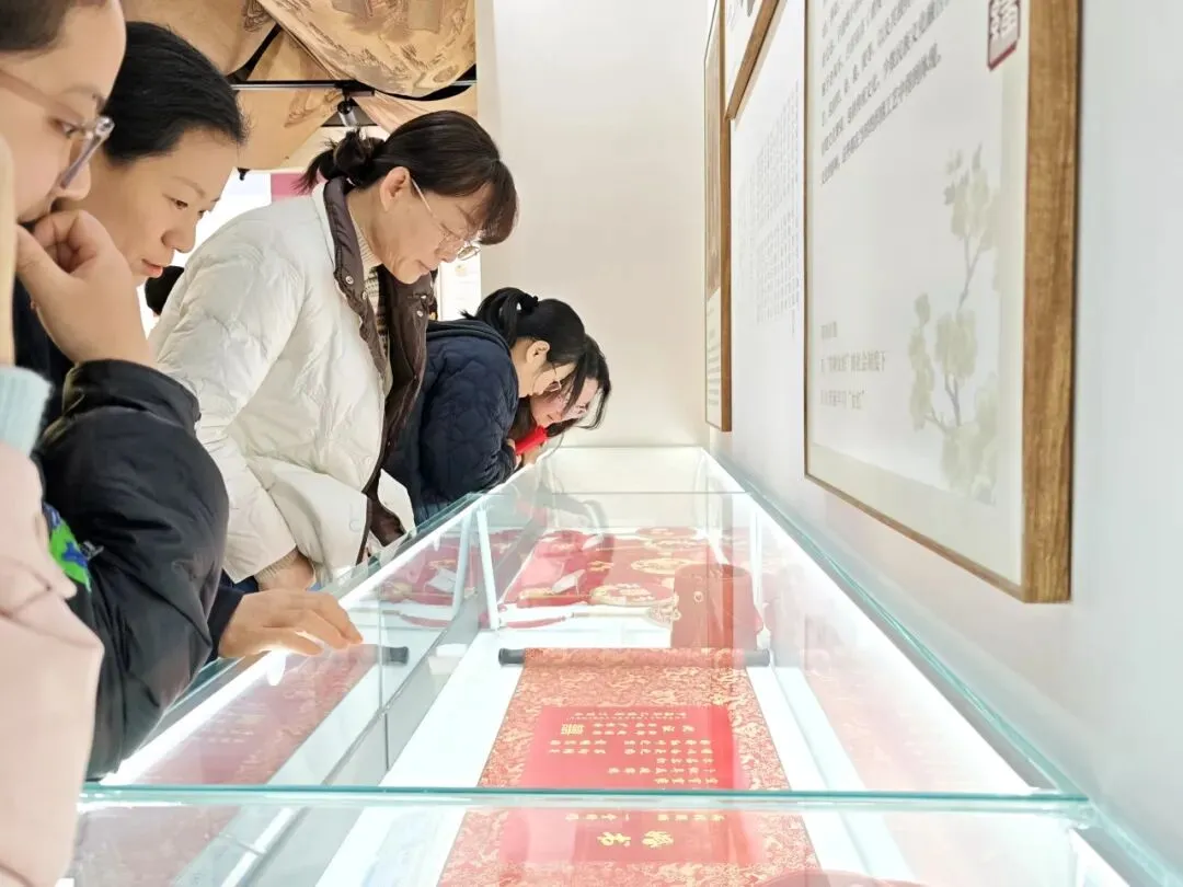 在一涵汴绣资深绣娘讲师万小娟的带领下,大家步入展厅,仿佛穿越了一条时光隧道。从气势恢宏的经典名作到细腻入微的花鸟条屏,万小娟老师以专业而温婉的讲解,为大家揭开了刺绣千年历史的帷幕。她详细介绍了刺绣的起源、历代针法的演变以及现代刺绣技艺的创新突破。面对馆内陈列的精美作品,尤其是那些以针代笔、以线晕色的精湛技法,参观者们无不驻足赞叹,被精益求精的工匠精神深深感染。