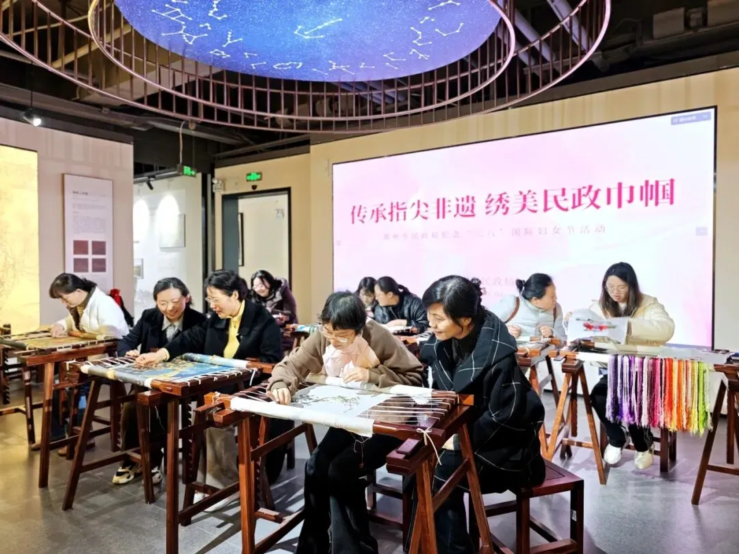 “没想到小小的绣针里有这么大的乾坤,这不仅考验技艺,更磨练心性。”一位参与体验的民政女职工感叹道。大家在飞针走线中不仅解锁了传统技艺的乐趣,更在一针一线间体会到了非遗传承的执着与沉静。