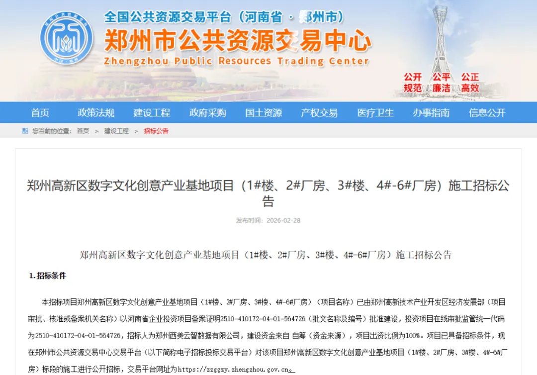 近日,郑州高新区在打造“微短剧创作之都”的进程中落下关键一子。位于天健湖北岸的数字文化创意产业基地项目正式启动施工招标,一座总建筑面积达17.5万平方米的产业新地标即将拔地而起。