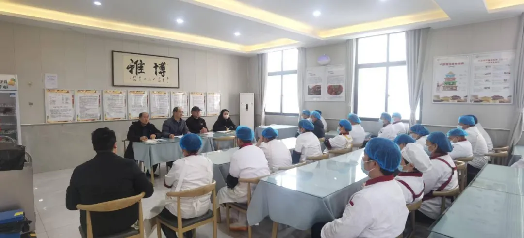 最后,由食堂经理对员工进行具体的安全规范培训和学习。重点讲解原料贮存、生熟分开、烧熟煮透、高风险食品管控等操作要点,以及从业人员个人卫生、晨检制度、应急处置流程等核心内容 。