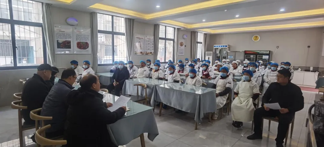 会议上,闫凯校长结合近年来校园食品安全典型案例,开展深刻的警示教育,剖析违规操作的危害与后果,为全体工作人员敲响警钟 。同时提出,全体食堂工作人员要“三个多”工作准则。多理解,工作时要换位思考,以耐心细心对待每一项工作,用心做好餐饮服务;多提醒,时刻紧绷安全之弦,相互监督、相互提醒,严守操作规范,杜绝安全疏漏;多沟通,及时反馈问题、交流经验,凝聚工作合力。让每一位工作人员知敬畏、守规矩、熟流程,从源头保障餐食安全。