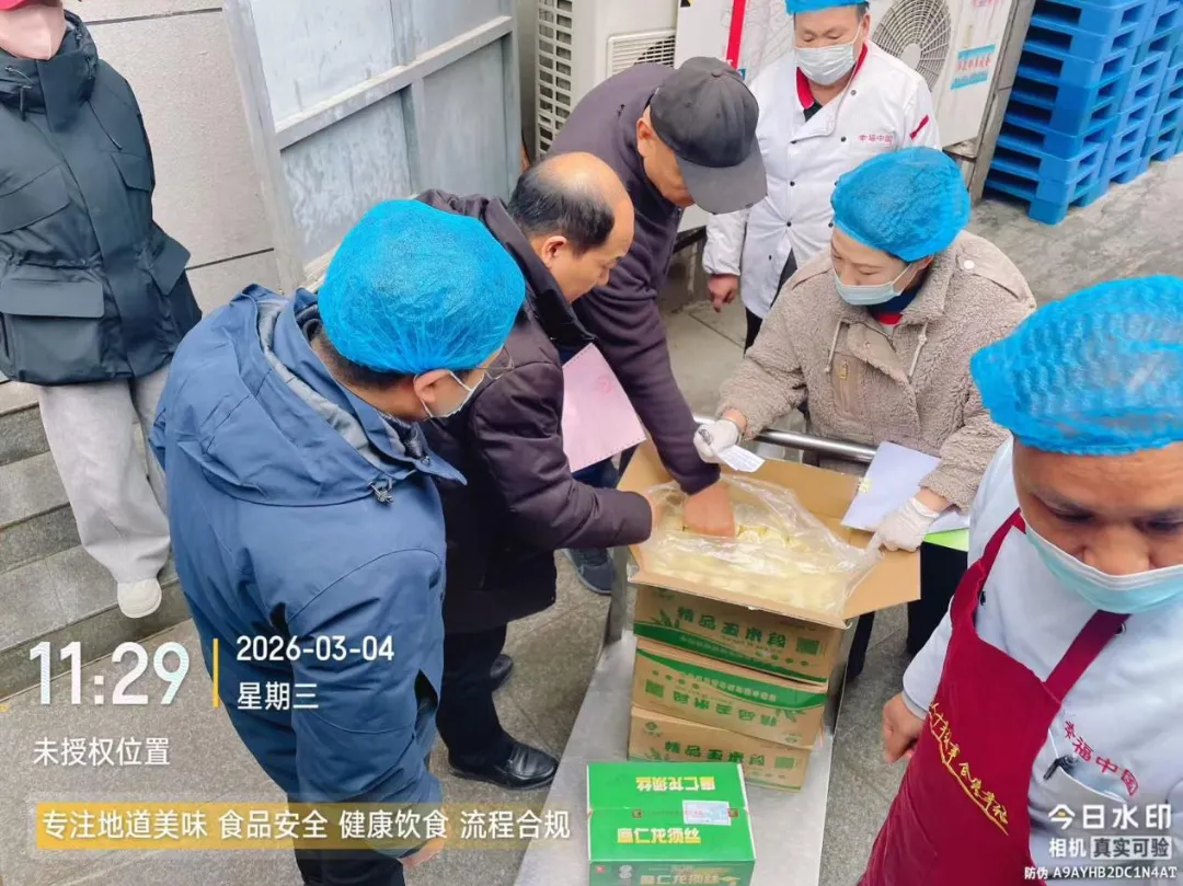 学校严格落实食材验收制度,严把食材入口关,对米、面、油、肉、蛋、蔬菜等各类原料逐一查验,严格核对进货凭证、检验报告、生产日期等信息,做到源头可控、全程可溯。同时,持续规范校领导陪餐制度,提前完善陪餐流程、记录台账和意见反馈机制,坚持陪餐人员与学生同标准就餐,实时监督菜品质量、口味与安全,及时收集反馈问题,持续优化提升餐饮服务,切实以细致管理守护师生健康。