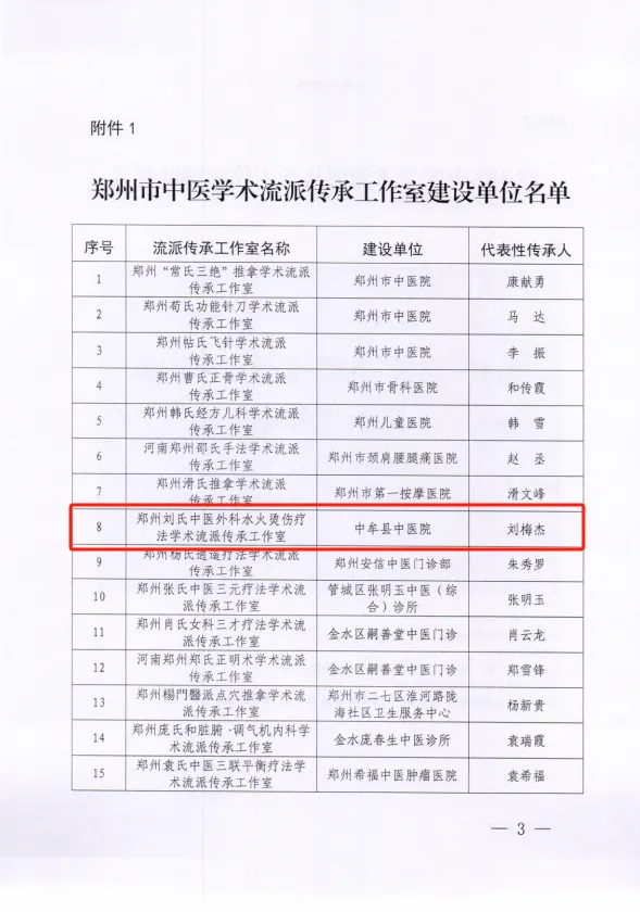 近日,郑州市卫生健康委、郑州市中医药管理局公布郑州市中医学术流派传承工作室建设单位名单,确定15个郑州市中医学术流派,并确定12家单位为郑州市中医学术流派传承工作室建设单位。