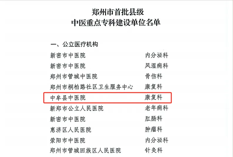 喜报!我院康复科荣获“郑州市首批县级中医重点专科建设单位”称号!