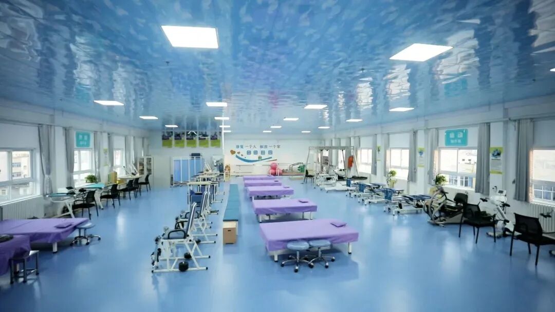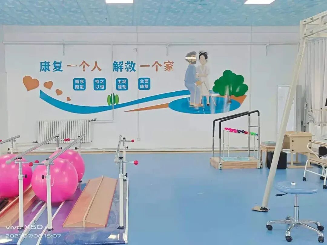 康复科病房设床位50张。6楼康复大厅面积三百多平方米,环境温馨舒适、布局设置现代化。康复中心设运动治疗区、作业治疗区、言语吞咽治疗区、物理因子治疗区、中医传统康复治疗区等五大区域。