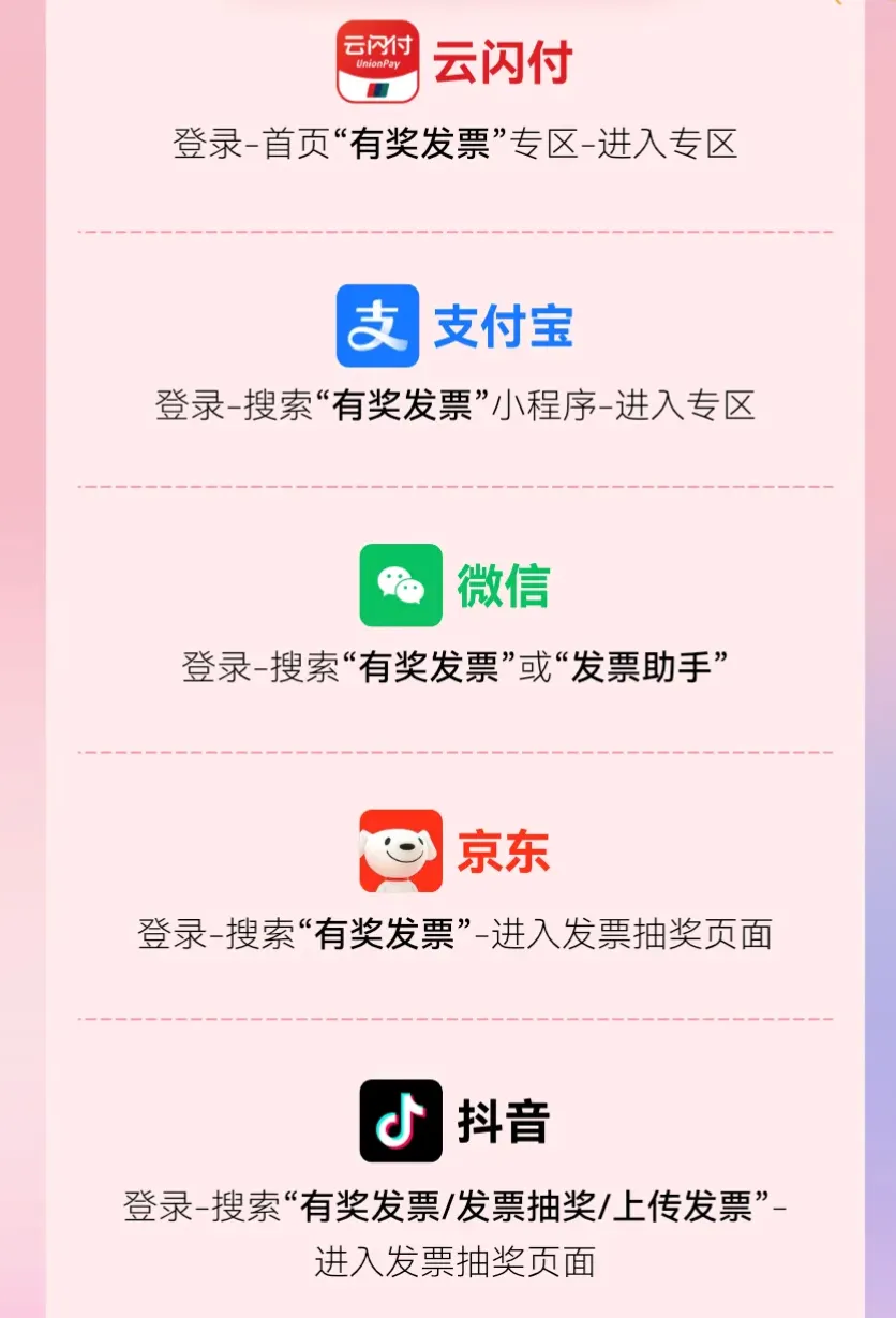 核验通过的发票,将由抽奖平台向个人消费者发放奖金。若核验不通过则不予发放奖金。本次活动支持以红包/零钱/账户余额等形式,由各抽奖平台将奖金转到参与活动的个人消费者账户中。发票提交抽奖后,第8至10天完成发票核验和奖金发放。