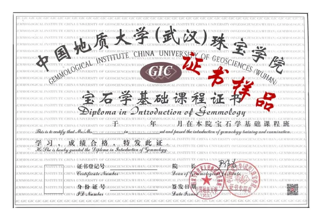 课程结束经理论和实践考试合格者,可获得由中国地质大学(武汉)珠宝学院统一颁发的“GIC宝石学基础课程证书”。