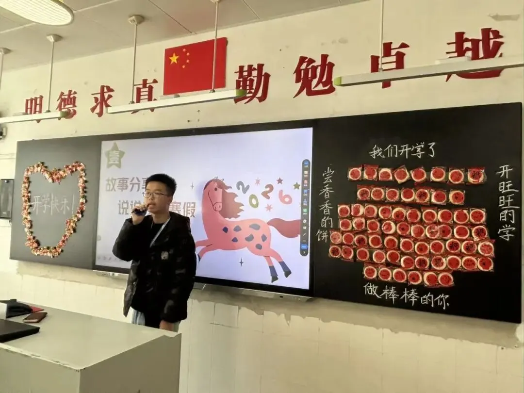 班会伊始,同学们踊跃分享自己的寒假故事。有人用“暖”字总结与家人团聚的温馨时光,有人用“拼”字记录假期坚持学习的点滴,还有人用“新”字表达对新学期的期待。一个个鲜活的词语,串联起同学们丰富多彩的寒假生活,也拉近了彼此之间的距离。