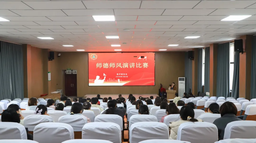 为深入学习贯彻习近平总书记关于教育的重要论述和全国、全省、全市教育大会精神,全面落实“教育家精神铸魂强师行动”要求,激励广大教师不忘立德树人初心,争做教育强国奋进者,3月6日上午,我校教学教务处在京广校区二楼报告厅举行2026年“师德师风演讲比赛”。本次活动以“铸魂强师,奋进有我”为主题,由2025年师德师风征文比赛获奖的11位教师同台演讲,全体任课教师现场观摩。副校长赵遂欣、教学教务处副科长张佳佳、教务行政徐稳担任比赛评委。