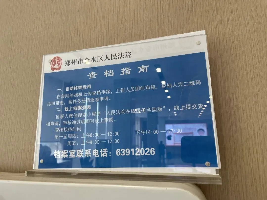 今天为大家实际演示一下金水法院是如何查阅档案的:
