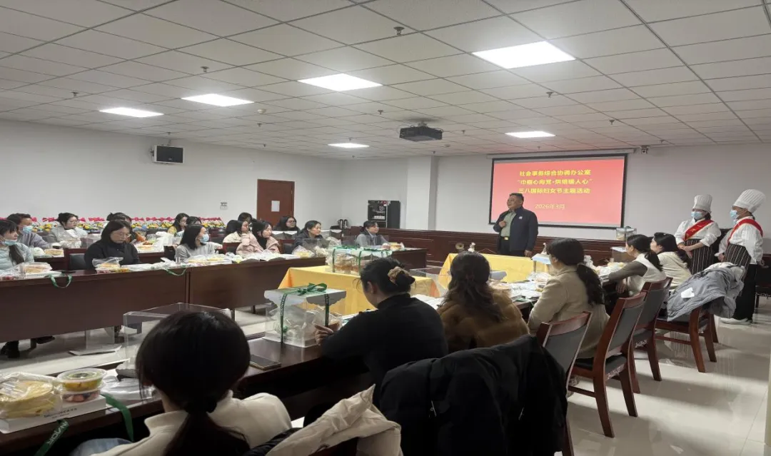 为纪念“三八”国际妇女节,进一步凝聚巾帼力量、展现全体女干部职工昂扬风貌,营造团队奋进、温暖和谐的机关氛围,2026年3月6日下午,郑州航空港区社综办举办“巾帼心向党·烘焙绽芳华”“三八”国际妇女节活动。社综办党组书记、主任胡焕合、二级调研员王晓出席活动并致词。