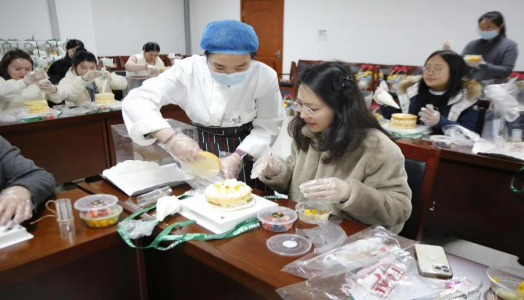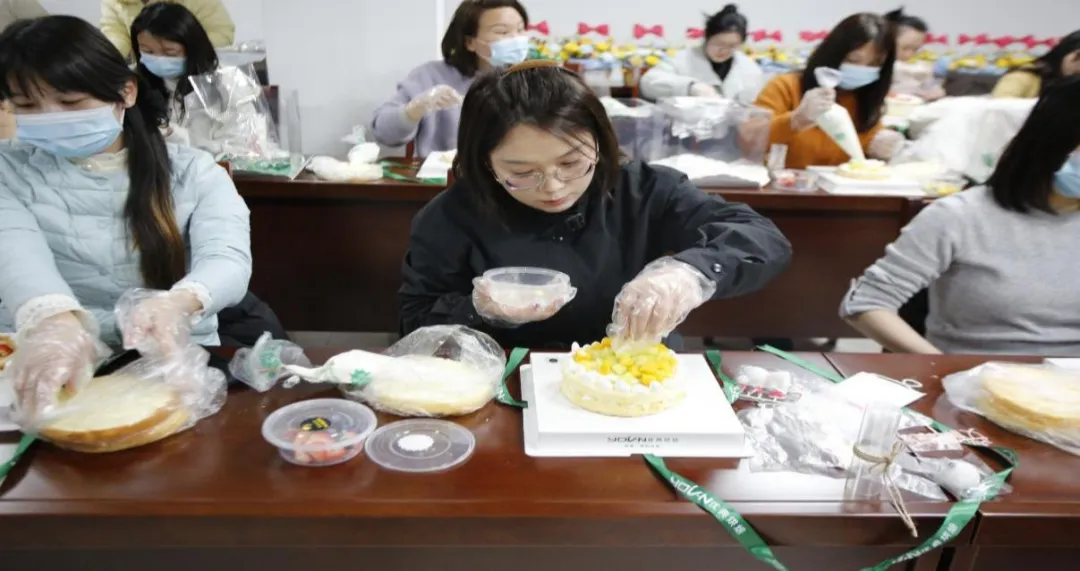 本次活动以烘焙DIY为载体,邀请专业烘焙师现场授课,从蛋糕抹面到创意装饰,一步步细致讲解,手把手示范指导。参与活动的女同志们热情高涨,纷纷拿起工具,在实践中交流协作。有的精心搭配水果摆盘,有的创意设计裱花图案,将对生活的热爱与对工作的热忱融入每一份作品中,现场弥漫着香甜气息与欢声笑语,处处洋溢着温馨和谐的节日氛围。