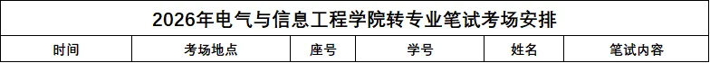 依照教务部时间安排,电气与信息工程学院2026年春季转专业笔试于3月7日上午举行,具体考试时间地点安排如附件1所示;面试于3月7日下午在电气与信息工程学院举行,时间地点安排如附件2、3所示。面试内容为:自我介绍+自由交流,请准备1-2分钟的自我介绍