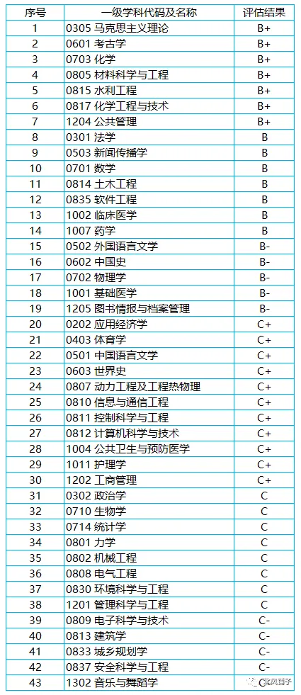 在教育部第四轮学科评估中,参与评估的专业有43个,虽然没有学科进入A类,但是在B类中的学科有很多,足见发展势头的强劲(见下表)。在第二轮“双一流”建设中化学、材料科学与工程、临床医学3个专业入选一流学科建设(关于学科评估的内容,点击这里查看)。