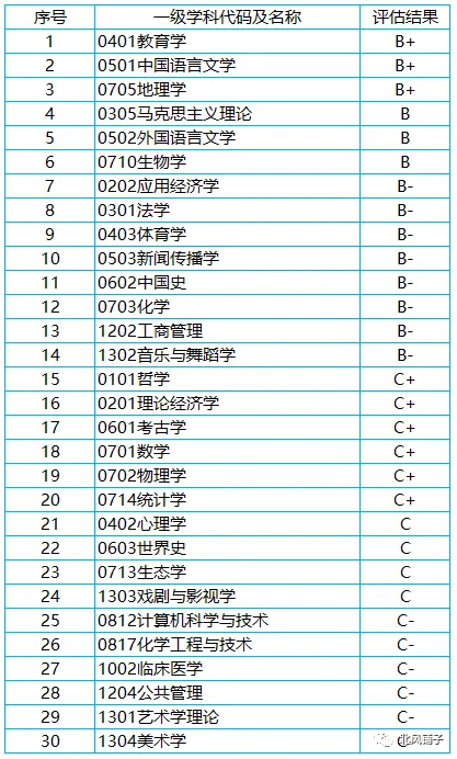 在教育部第四轮学科评估中,参与评估的专业有30个,虽然没有进入A类,但是在进入B类的学科众多(见下表)。在第二轮“双一流”建设中生物学入选一流学科建设。