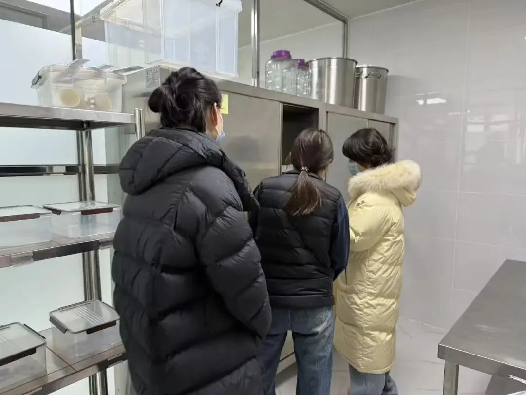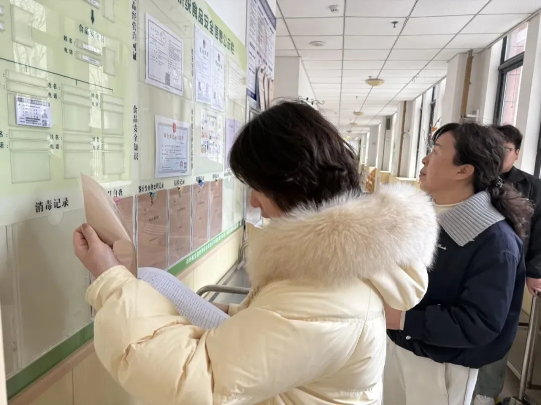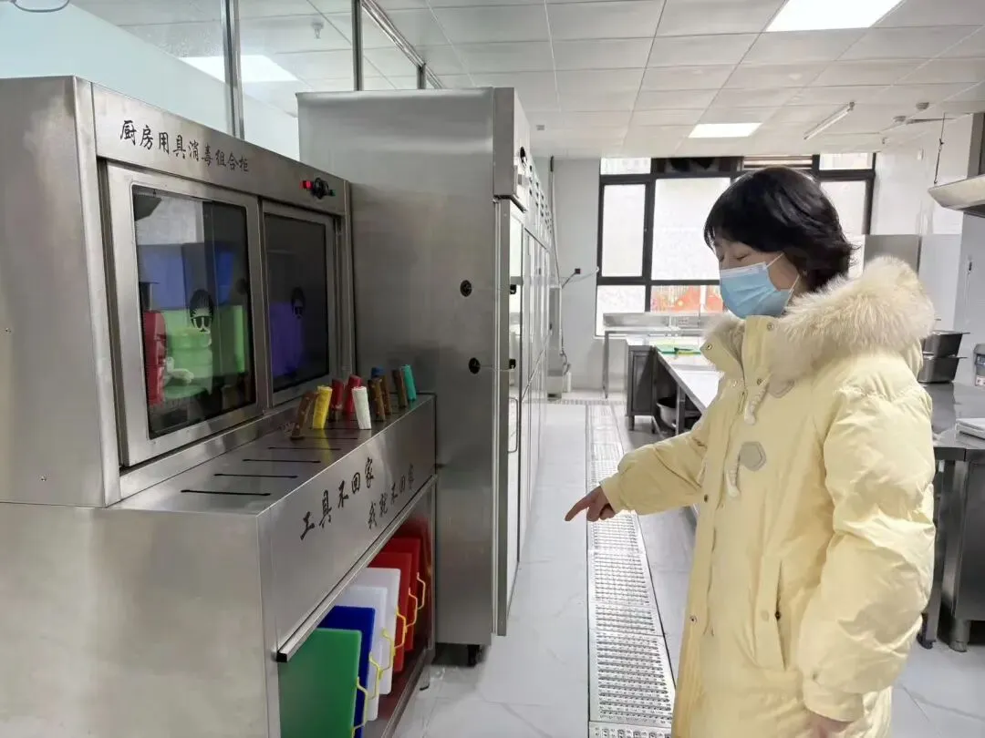 检查组深入厨房现场,对幼儿园的下水道、留样柜、消毒柜、砧板、炊具日常消毒、菜品管理、食材管理、主副食仓库存放管理、食品安全信息公示、工作人员健康管理等情况进行了细致查看,深入了解幼儿膳食营养搭配与“健康第一”教育理念的融合落地情况。