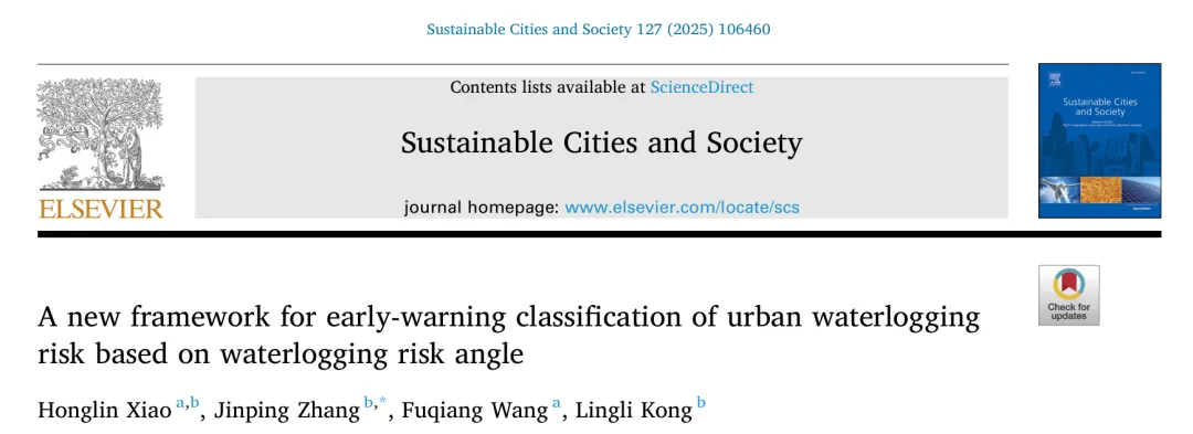 Xiao, H., Zhang, J., Wang, F., & Kong, L. (2025). A new framework for early-warning classification of urban waterlogging risk based on waterlogging risk angle. Sustainable Cities and Society, 127, 106460. https://doi.org/10.1016/j.scs.2025.106460