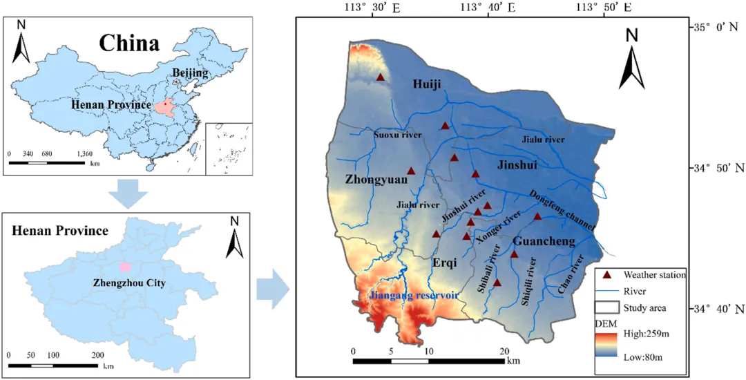 随着全球城市化进程加快和极端天气事件频发,城市内涝灾害已成为威胁城市可持续发展的重要问题。特别是2021年郑州“7·20”特大暴雨灾害造成了重大人员伤亡和财产损失,国务院灾害调查组的调查报告指出,城市暴雨内涝预警机制亟待完善。当前城市内涝预警主要基于气候模型,但受城市下垫面条件和管网排水系统的复杂影响,实际产汇流过程更加复杂。现有的数值模拟方法虽然应用广泛,但受限于对水动力机理的理解不足和模型结构复杂;而机器学习方法虽然建模简单,但需要大量数据样本且难以描述水文物理机制。此外,现有研究多采用单一临界雨量进行预警,忽视了降雨雨型对内涝形成时间的重要影响,容易导致“空报”或“漏报”问题。