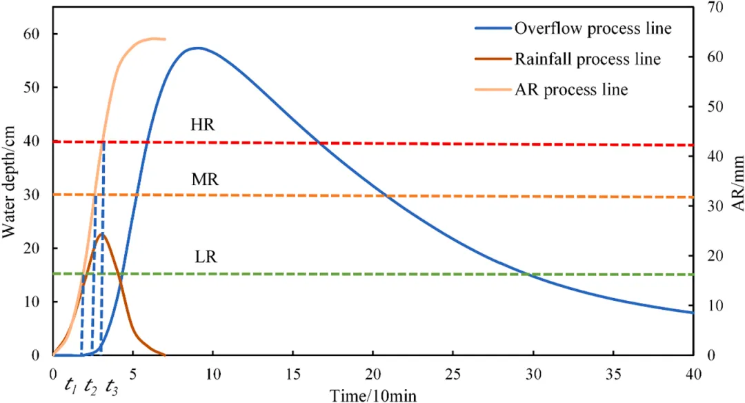 预警时间分类与计算: 研究将EWTUWR根据积水深度划分为三个风险等级:Ⅰ级(低风险,15cm)、Ⅱ级(中风险,30cm)和Ⅲ级(高风险,40cm)。通过将累积降雨过程线与各等级临界水深线相交,得到各级风险的CR发生时间,再结合计算出的WRA值,利用特定公式分别计算FPR和BPR对应的EWTUWR。
