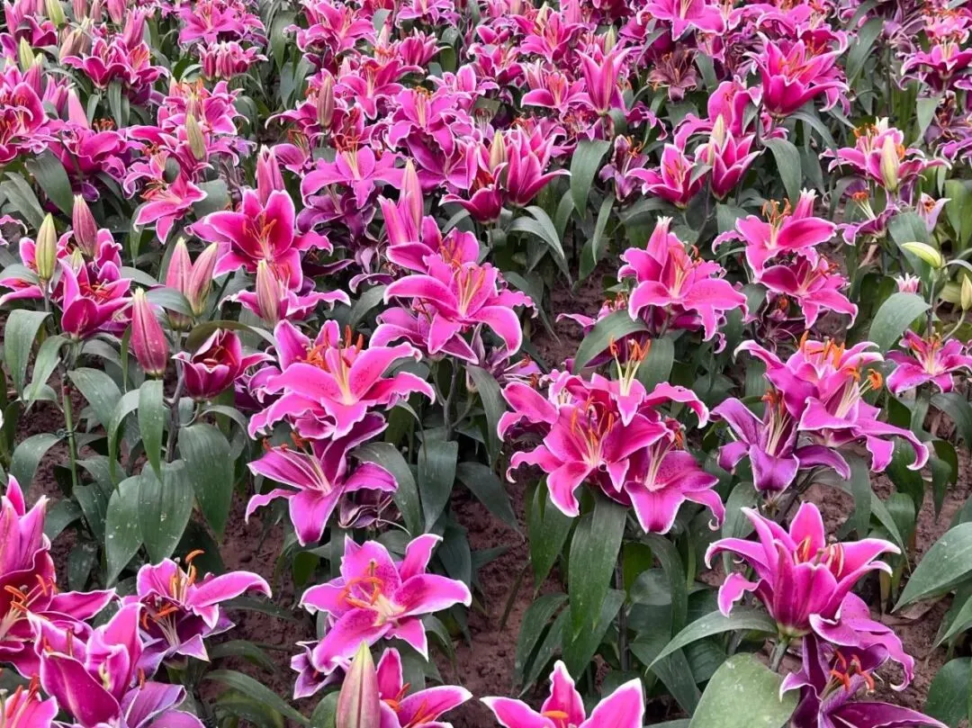 想看百合展,就往右沿着湖一直走,会看到一个很大的暖棚,里面种满了各品类的百合:粉的、红的、橙的……各色花海连成片,逛完一圈出来,连头发丝都带着淡淡的花香。