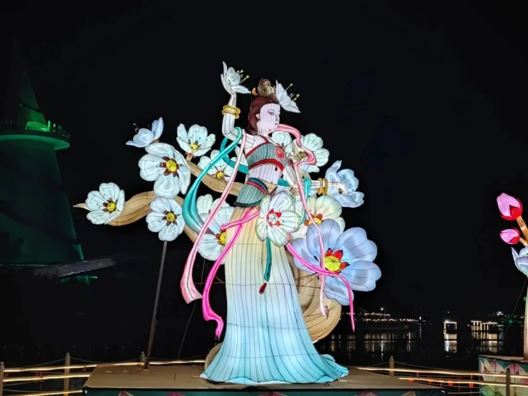 30组不同主题的大型灯组,把非遗工艺和现代光影结合得刚刚好,在河水的映衬下格外绚烂。个人最推荐十二花神的灯组,仙气十足,拍照特别出片。