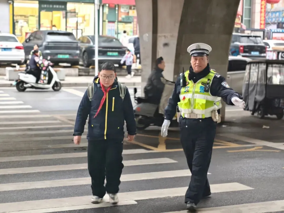 郑州交管十一大队以“定点+流动+宣传”三维模式护学,开学前对接校方摸排隐患、优化岗点,7时许全员到岗,疏导车辆、护送学生过街,同步开展“开学安全第一课”,营造“警校家”协同护学氛围。
