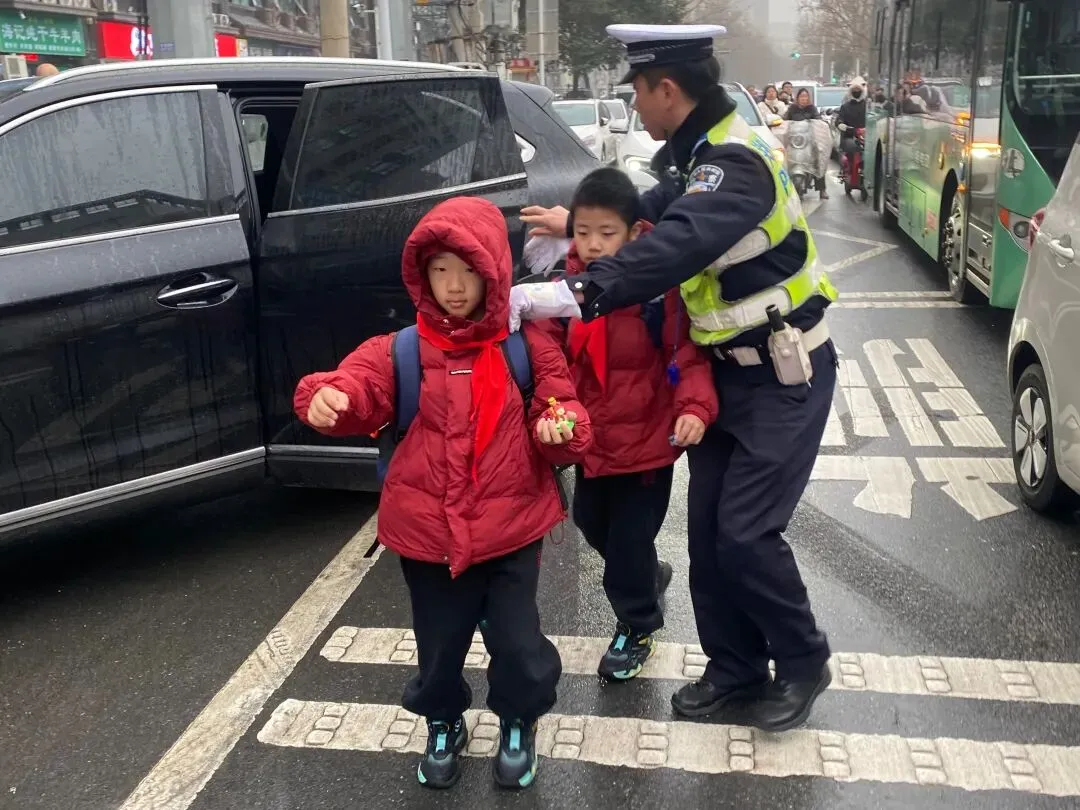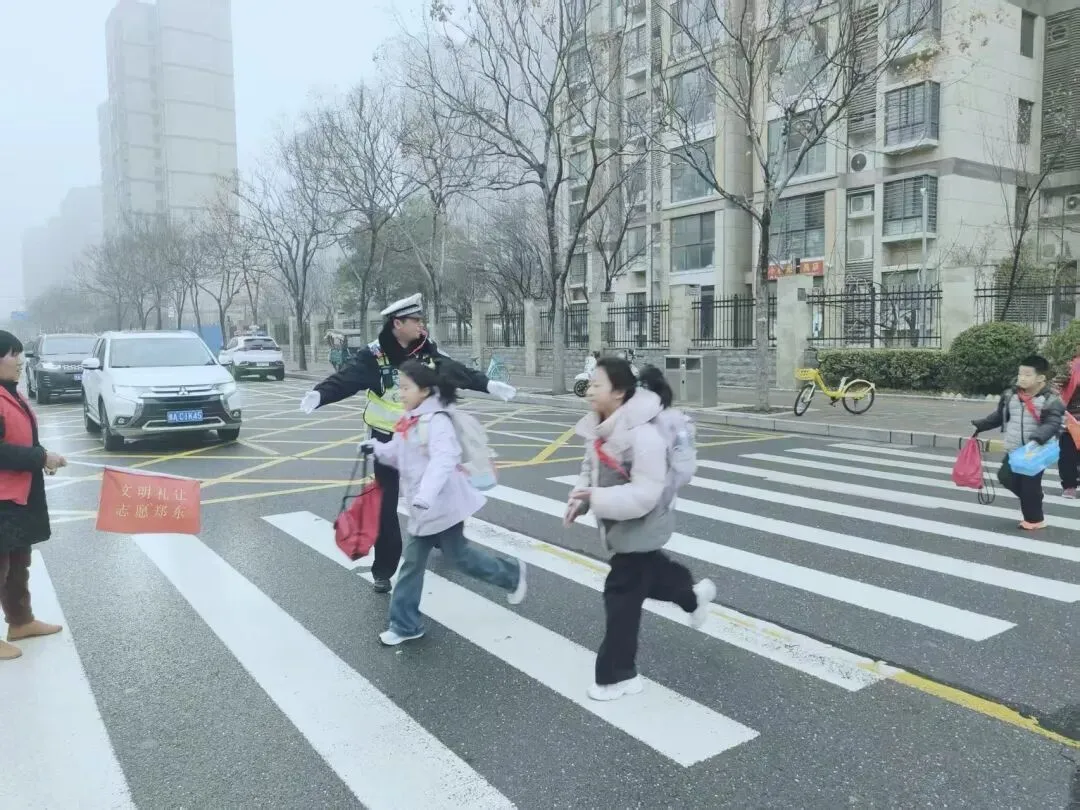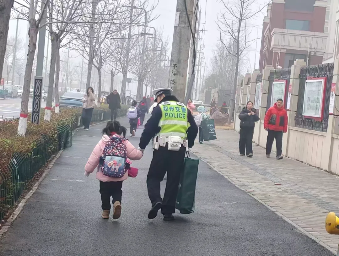 郑州交管六大队为切实保障校园周边道路交通安全,全面开启“护学模式”,民辅警提前到岗,疏导交通、规范停车、引导学生及家长即停即走,贴心护送学生安全过马路,提醒车辆减速礼让,筑牢校园周边安全屏障,让家长安心、学校放心。