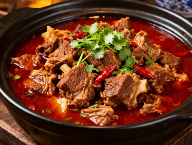 中午得吃红焖羊肉。这里的羊,是在山崖上蹦跶着长大的,肉紧实,不膻。锅盖一掀,热气裹着肉香“呼”地一下扑到脸上,肉块炖得红亮,咬下去,皮是糯的,肉里的汁水混着微辣的汤底,在舌尖上打转。配菜一定要点当地的豆腐,孔大,吸饱了汤汁,比肉还抢手。