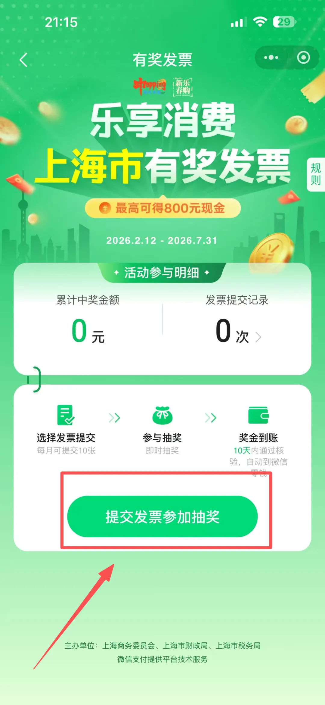 进入查询工具后,在城市列表里找到【上海】,点进攻略后点击【抽奖指南】,就可以看到发票抽奖的入口,点击就会自动跳转到抽奖界面,无需再来回切换各个地点。