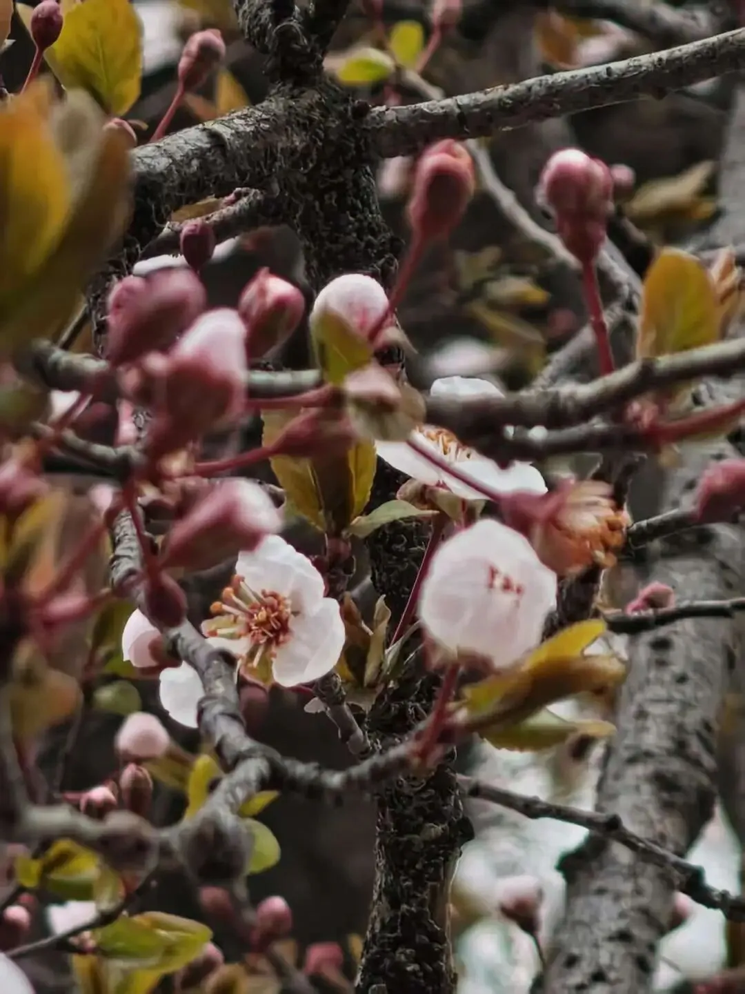 郑州的这几天的天气有点阴郁,总被一层淡淡的阴霾笼罩着。有时候朦胧的雾气漫过街巷,将高楼、树木都晕染成模糊的轮廓,连阳光也变得温柔而微弱,裹着几分微凉的水汽,难掩天地间的灰蒙蒙质感。上班路上的人们大部分还穿着羽绒服,他们步履匆匆,行色匆忙,我抬头望向天空,眼底难免掠过一丝对晴朗的期盼,却在低头的不经意间,猛然发现了藏在阴霾里的生机。