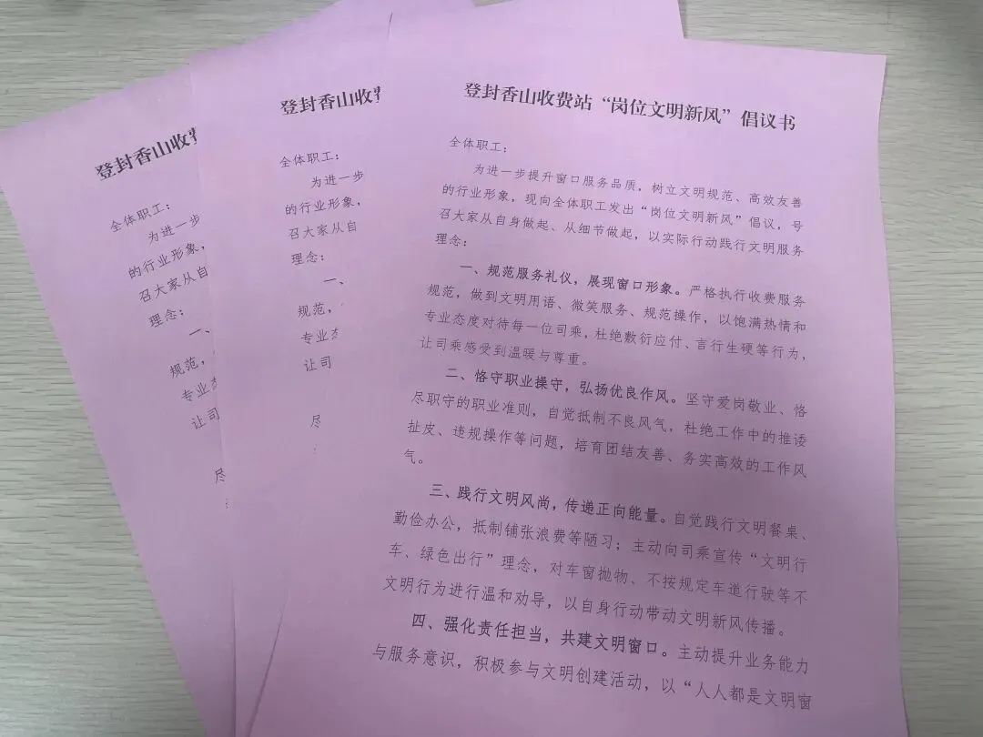 活动期间,所属收费站结合自身实际,紧扣移风易俗、文明乡风等内容,从规范职工服务礼仪、劝导司乘不文明行为入手,组织职工学习文明行为规范,发起“岗位文明新风”倡议。组织职工集中观看移风易俗、普法教育专题视频,引导大家自觉摒弃铺张浪费、攀比跟风等陋习,树立文明健康生活理念;在收费窗口张贴文明出行标语,组织志愿者向司乘发放倡议书,普及移风易俗与文明行车知识,对车窗抛物、不按规定车道行驶等不文明行为进行劝导。同时,组织志愿者深入周边村庄,向村民宣传文明倡议、普及文明理念,以实际行动助力乡村文明建设。