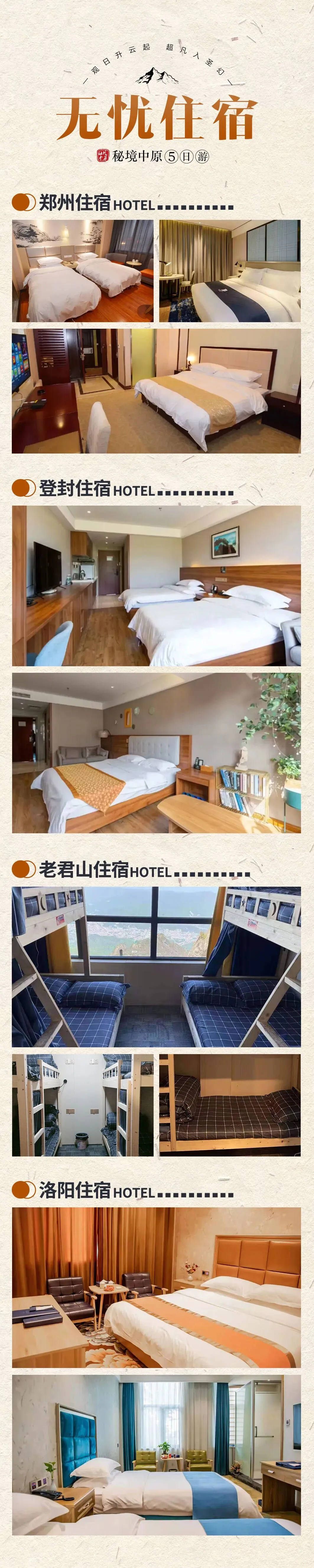 3、房间安排:全程安排双人间,分房时会尽量满足同行者同屋,但不做保证;