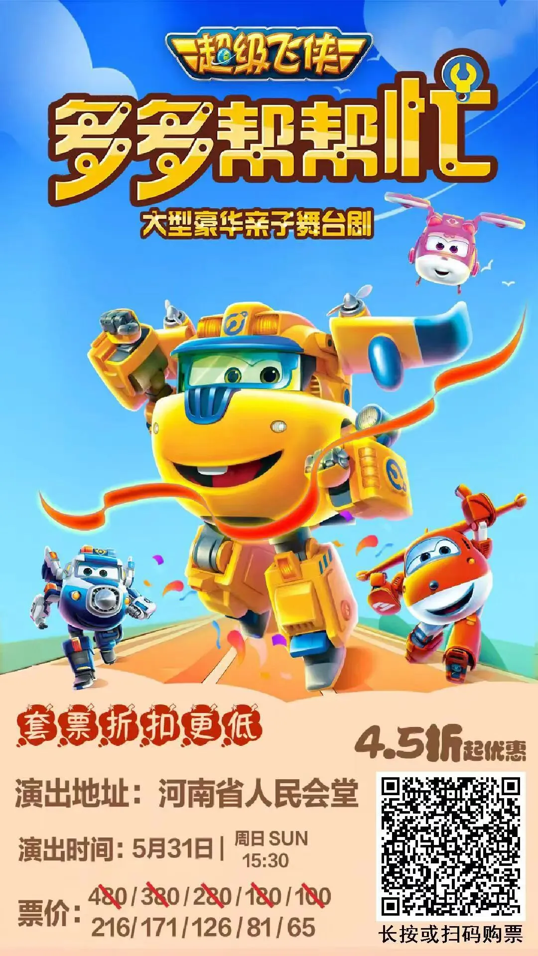 郑州开票️正版IP超级飞侠《多多帮帮忙》5.31太原早鸟4.5折开票啦!优惠门票重磅推出