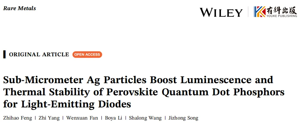 题目:Sub‐Micrometer Ag Particles Boost Luminescence and Thermal Stability of Perovskite Quantum Dot Phosphors for Light‐Emitting Diodes作者:Zhihao Feng | Zhi Yang | Wenxuan Fan | Boya Li | Shalong Wang | Jizhong Song接受日期:First published: 03 March 2026原文链接:https://doi.org/10.1002/rar2.70210